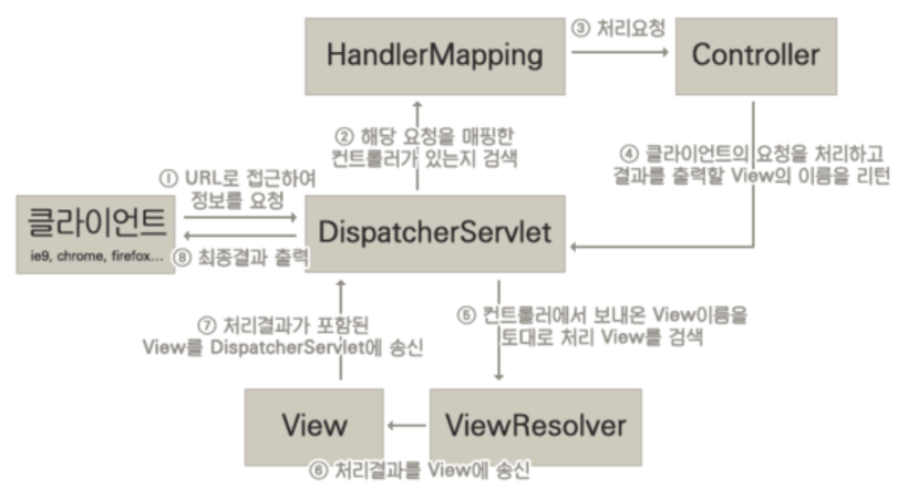 그러면 그 맵핑된 곳으로 이동하기 위해서 디스패처서블릿은 view 이름을 찾아서 뷰 리졸버를 통해서 화면을
