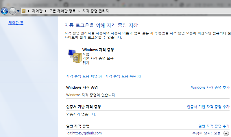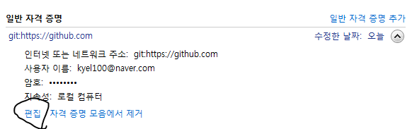 하단에 보시면 일반 자격 증명에 github.com 관련 내용이 있네요 !