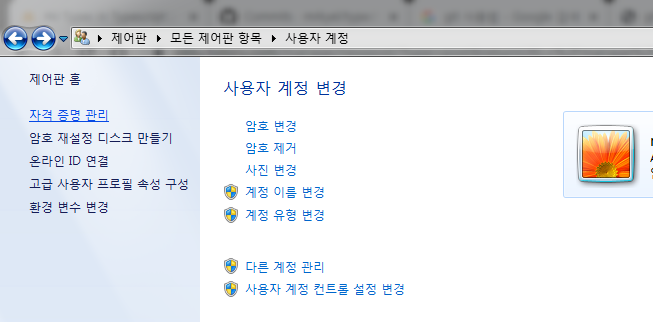 위와 같은 화면에서 좌측에 보시면 자격 증면 관리가 보이시죠? (윈도우7입니다...^^...죄송)