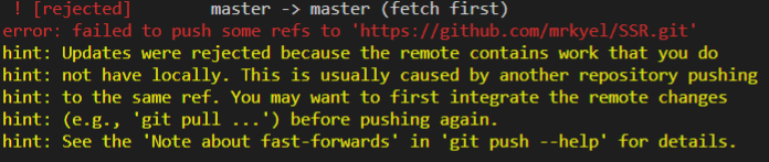 hint: 'git pull ...') before pushing again.
